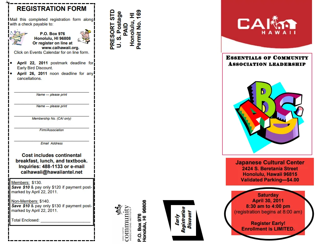 Full day session at Japanese Cultural Center; includes continental breakfast, lunch, The Essentials of CA Management ManualProgram Coordinator: Alan Takumi, Certified Management